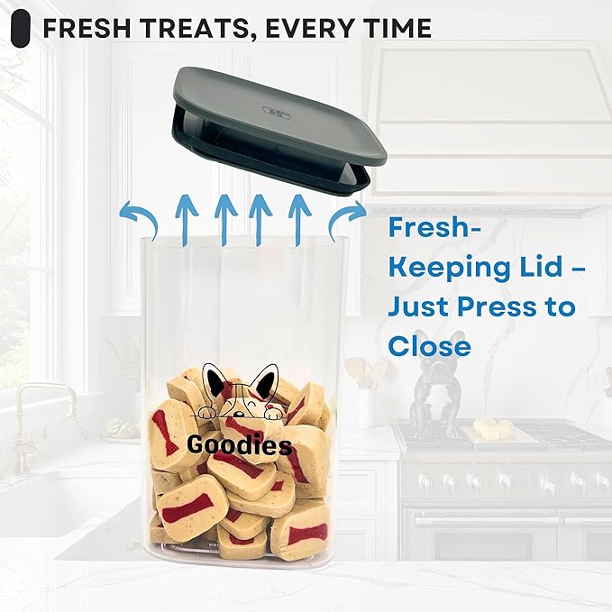 - Seal for Freshness - Each treat jar features a simple secure-lock closure, no buttons or snaps, just push down to lock in freshness. A must-have dog treat container seal option.