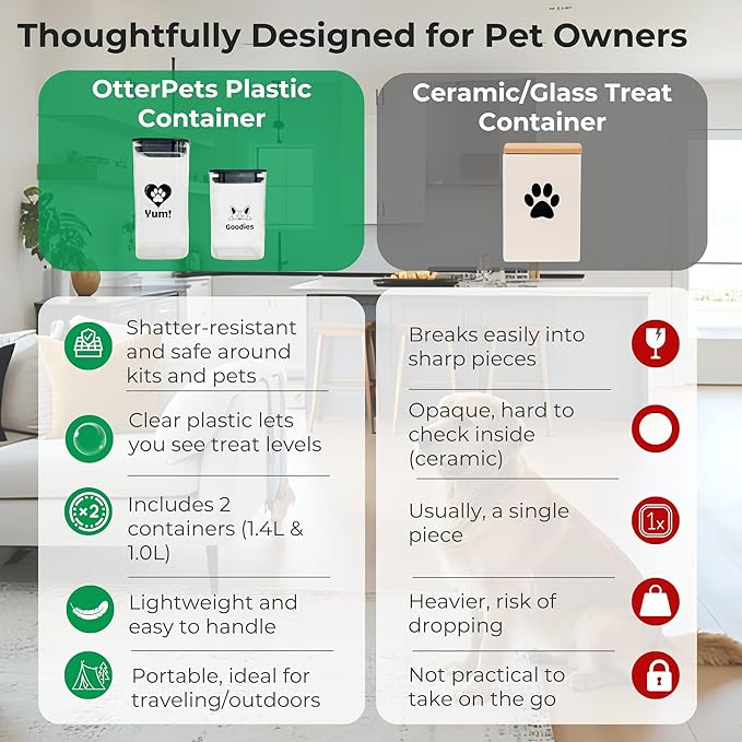 - Versatile Sizes for All Treats - Includes two dog treat containers: 1.4L (6 cups) and 1.0L (4.25 cups). Perfect for storing anything from small training treats to larger snacks; no clutter on your counter!