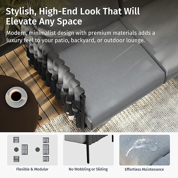 - TRANSFORM YOUR BACKYARD IN STYLE: Designed by EAST OAK with a patented modern look, this conversation set instantly elevates any outdoor space. Its sleek, contemporary design adds a sophisticated touch to patios, balconies, and gardens—creating a stylish, inviting atmosphere for relaxing or entertaining