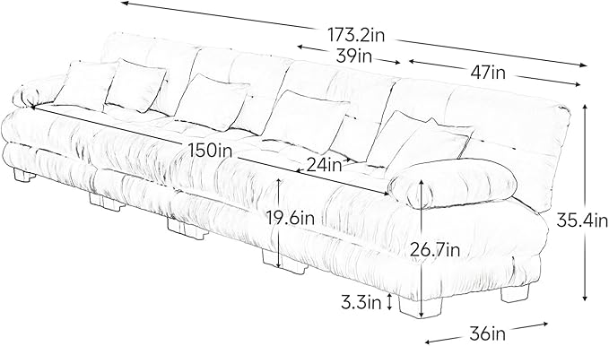 - Product Dimensions : 36"D x 173.2"W x 35.4"H