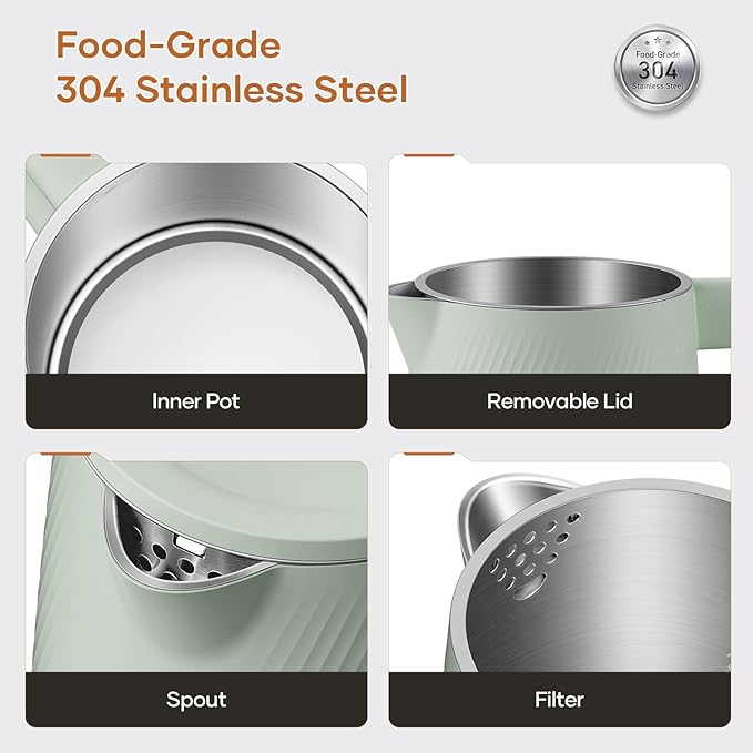 - Safe Double-Layer Design – Safety and health go hand-in-hand with our tea kettle. The cool-touch plastic outer shell keeps your hands safe from burns, while the BPA-free, food-grade 304 stainless steel interior ensures you’re drinking only the purest water. Enjoy every sip with total peace of mind