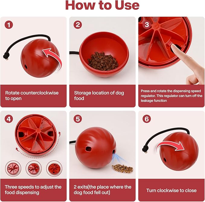 - Adjustable Food Leakage Dog Treat Ball: With 3 adjustable difficulty settings,this dog toy treat dispenser allows you to customize the treat release speed,helping dog to eat slower,you can also turn the food leakage feature off and play with it as a toy ball