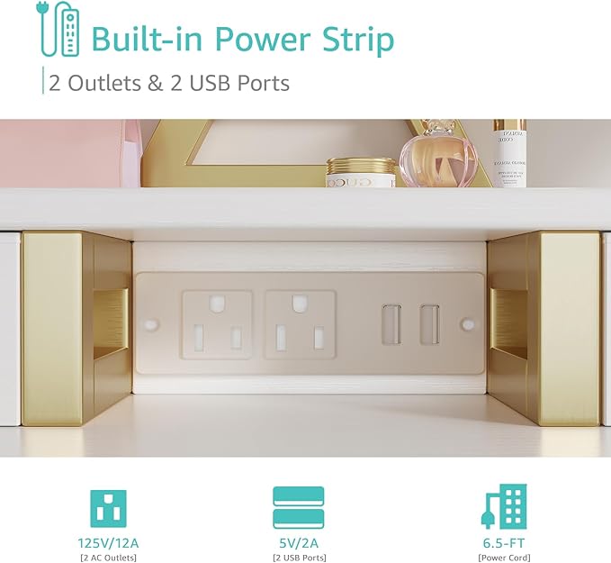- Convenient Power Access: Stay connected with built-in 2 plug sockets and 2 USB ports, perfect for charging your phone, tablet, or hair tools while you get ready. Enjoy the ultimate convenience at your fingertips