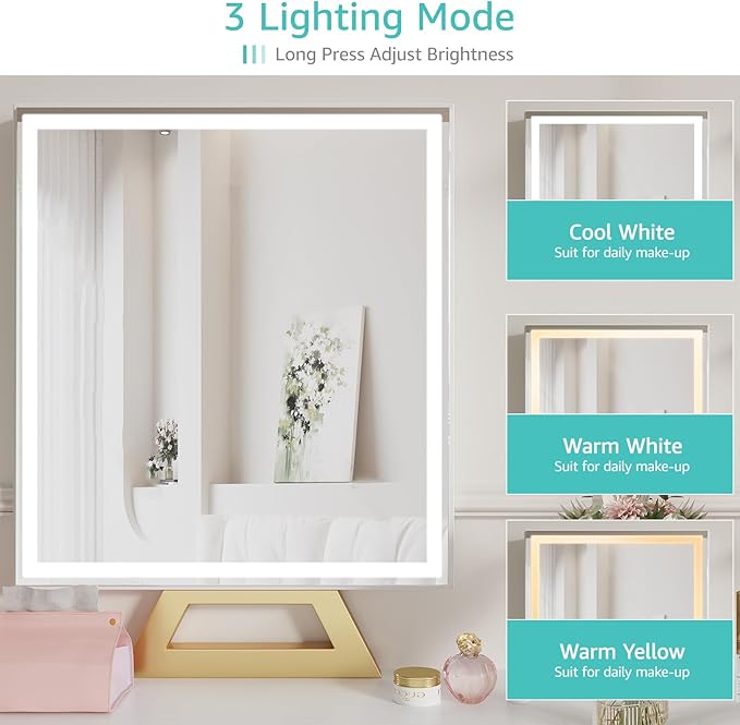- Enhanced Lighting: LED mirror offers natural, warm, and cold light options; adjust brightness by long-pressing the screen for perfect makeup in any scene, ensuring flawless result every time