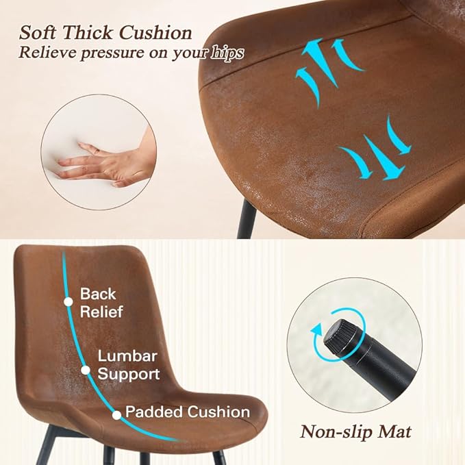 - 4. Brown Suede Upholstered Chairs — This dining table and chairs set for 6 includes six upholstered chairs wrapped in soft suede fabric that’s breathable, skin-friendly, and wear-resistant. High-density foam cushions and ergonomic backrests provide excellent comfort for long dinners or gatherings. Sturdy metal legs with non-slip pads protect floors and ensure reliable seating.