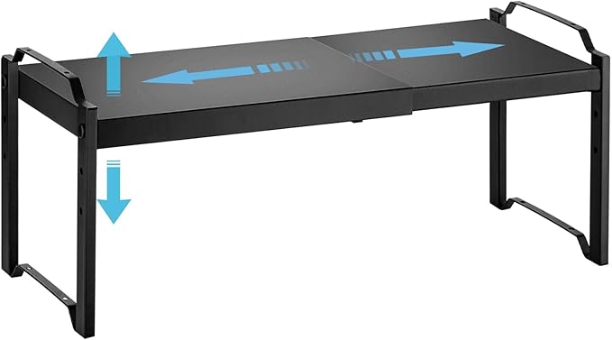 1 Pack Expandable Cabinet Countertop Shelves, Stackable Shelves Organizers for Kitchen Cabinet Countertop Storage, Adjustable Counter Cupboard Pantry Organizer Shelf Rack Stand, Length:25.5"