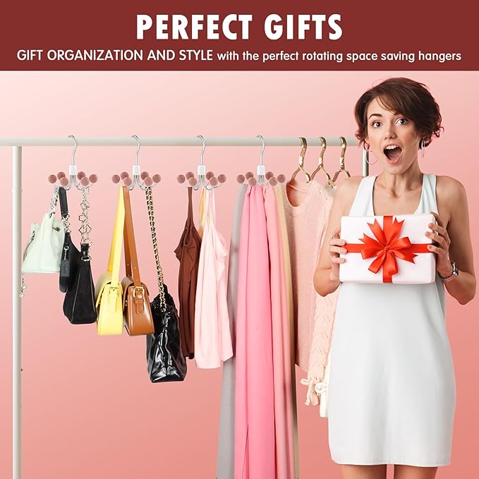 - Ideal Purse Organizer for Closet & Bag Organizer: Enjoy a clutter-free wardrobe with our 360° rotating purse organizer. This bag organizer for closet is perfect for hanging handbags, mini bags, purses, and small accessories – a must-have purse hanger that maximizes space and keeps your wardrobe clutter-free