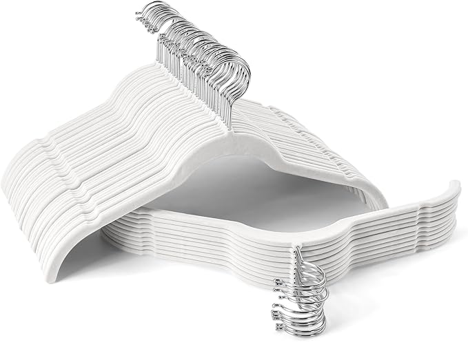- 🌟 Complete Closet Refresh – 50-Pack Value Set: Transform your wardrobe with this deluxe set of 50 white velvet hangers, designed to bring both elegance and efficiency to your closet organization.