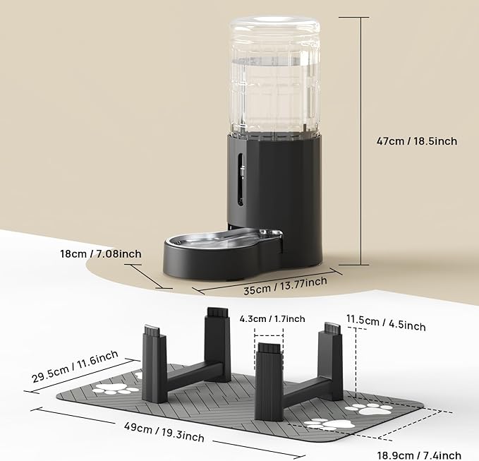 CZPET Elevated Dog Water Bowl Dispenser with Mat for Large Dogs,Tall Raised Pet Waterer Stand,Relieve Neck Pressure,Large Capacity and Drinking Area Noise-Free for Pets (9L+Stand+Mat)
