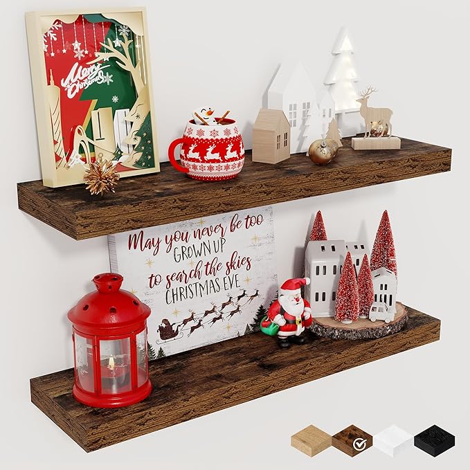 - EASY TO ASSEMBLE: Upgraded hidden mounting bracket aligns ensure a sleek floating effect, making the shelves secure. Instructions, a magnetic level, drywall anchors, and screws are included, making it easy to mount these rustic shelves gap-free in under 8 minutes