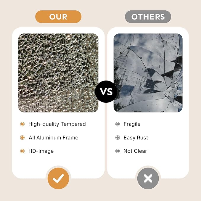 - š [Shatter-Proof & High-Quality] ā Made with premium acrylic glass for safety (no risk of shattering) and ultra-clear reflection. A must-have Hollywood-style vanity mirror for makeup artists, influencers, and home use!