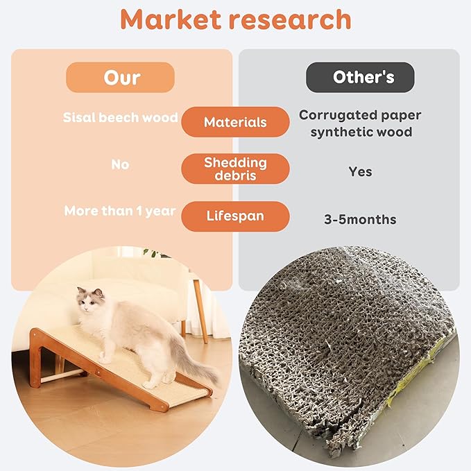 - 【Natural sisal and wood】natural sisal woven scratching pad crafted from natural sisal, this scratching pad is wear-resistant and long-lasting, satisfying your cat's natural scratching instincts.Compared with the paper cat scratch board, more durable, more robust, do not have to worry about the paper scraps scattered on the ground, not easy to clean the problem
