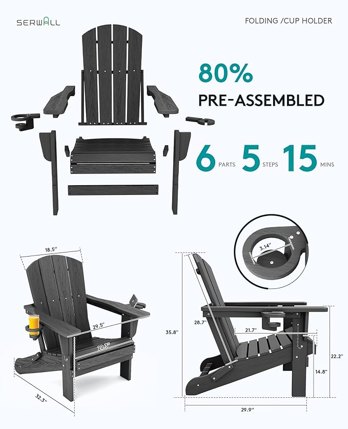 - [Multi-function]:The SERWALL Outdoor Round Coffee Table and Chairs complements your garden and patio. The round patio side table provides more tabletop space for outdoor gatherings. Perfect for placing food, drinks, books, or even playing games. The adirondack chairs give you a comfortable space to sit and relax.