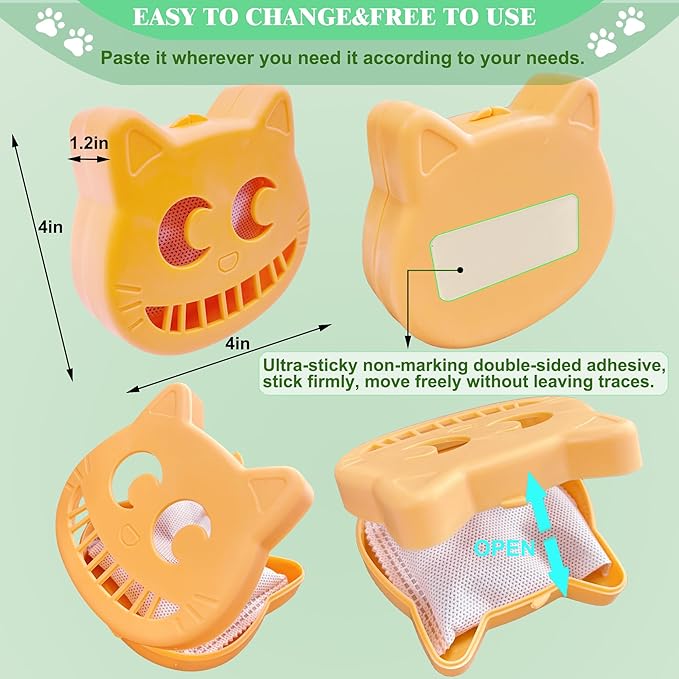 Unscented Cat Litter Box Deodorizer Kit Stick-On Activated Carbon Odor Eliminators Compatible with most manual and automatic litter boxes (4 Refills+ 1 Box) (Orange, Unscented)