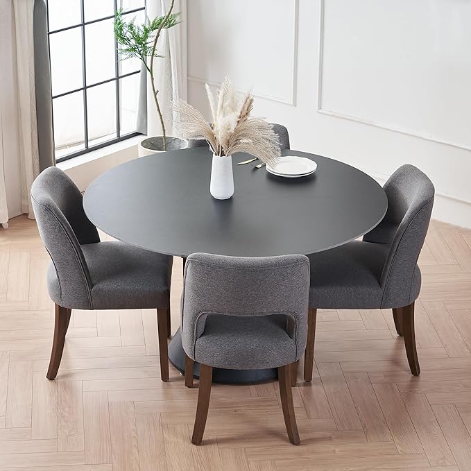 VKNOW Wooden Dining Chairs Set of 4, Modern Fabric Upholstered Dining Room Chair Kitchen Chairs, Farmhouse Dinner Chair for Kitchen Dining Room, Fabric Grey