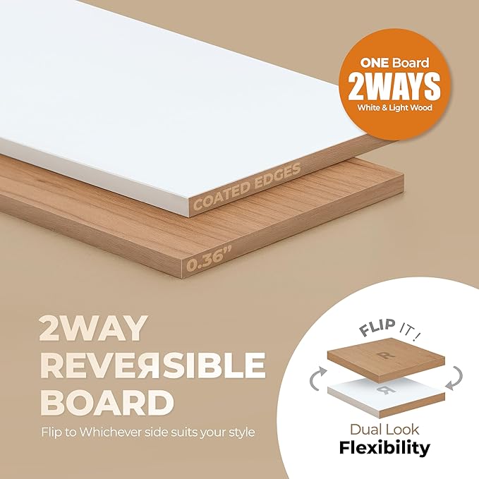 - STYLISH REVERSIBLE BOARD (WHITE & WOOD) – Matches any decor with dual-sided boards (White or Wood Grain). Features a clean "Secret Hole" design with no visible holes on the front. Waterproof, scratch-resistant, and easy to clean.