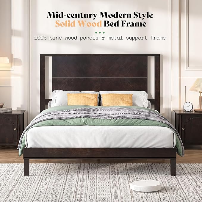 - Sturdy & Durable: Wood slats provide full mattress support, a capacity of up to 1000 lbs. No box spring needed. The dark brown bed frame is constructed with an outer solid wood frame and an metal frame for added durability and stability.