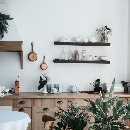 Colima Bathroom Floating Shelves for Wall, 36" Floating Wall Mounted Shelf, Rustic Wood Storage Display Shelf for Home Organization, Bathroom, Kitchen, Living Room (Set of 2, Black)