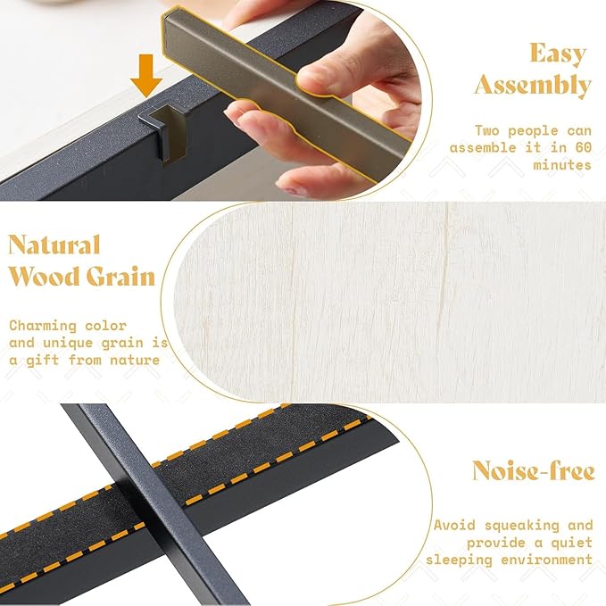 • 【Farmhouse & Rustic Style】Platform bed features a natural wood grain finish and barn headboard, charming classic farmhouse element that brings a rustic and vintage aesthetic to your room and matches any home style