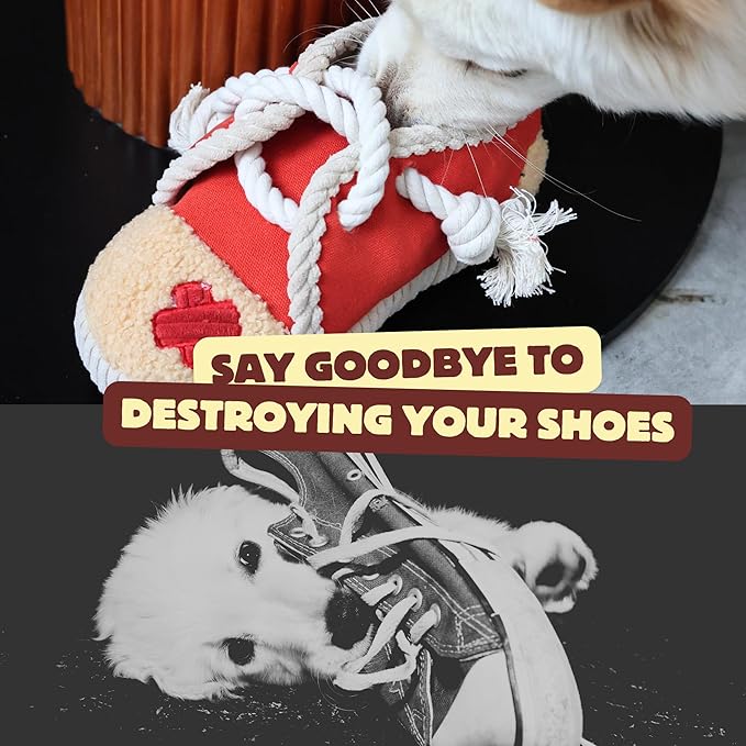 - π The Perfect Shoe Alternative for Chewers β Does your dog have a habit of chewing your shoes? Our dog shoe chew toy provides a realistic shoe shape to redirect destructive chewing to a fun and safe alternative, protecting your sneakers, sandals, and furniture from damage.