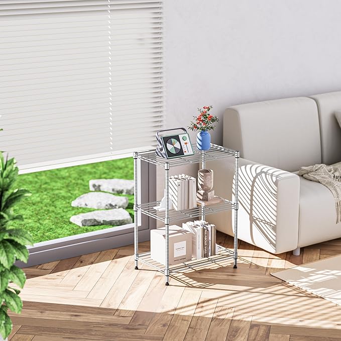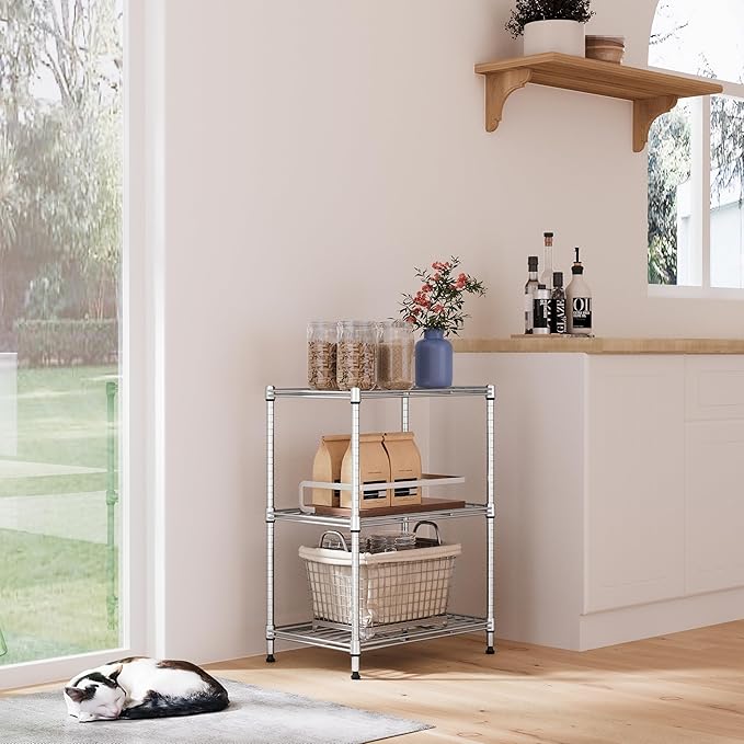 IZEUK 3 Tier Shelf, Heavy Duty Steel Wire Shelving Unit for Home, Kitchen, Laundry Room Organization, Office Storage Rack (17.7" W x 11.8" D x 26.3" H, 450LBS, Chrome)