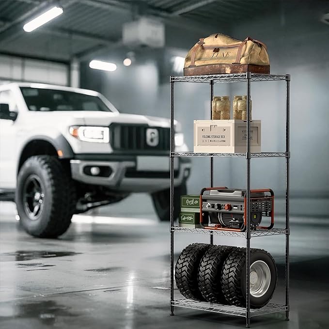 IZEUK 4-Tier Black Steel Storage Shelves, Heavy Duty Utility Wire Rack Organizer for Kitchen, Office, Home, 1000 lbs, 13.7" D x 23.6" W x 53.4" H