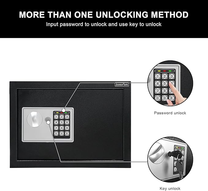 - √The Latest Unique Intelligent Lighting Design: This safe box is equipped with the latest humanized lighting design. As soon as you open the box with the numeric keypad, the light will light up, even in the dark, you can see the internal items, hidden and safe.When the door is opened, its brightness reaches the brightest, then it slowly dims and automatically goes out after 30 seconds.