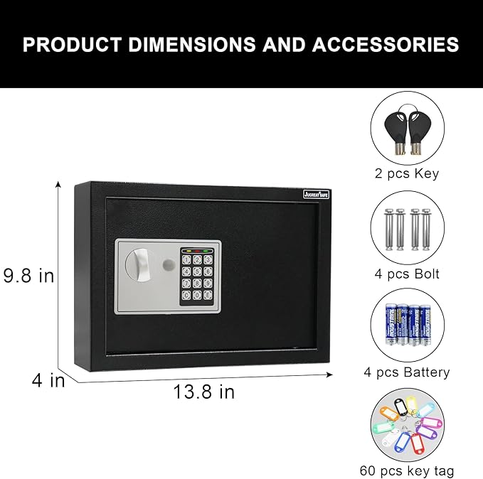 - √ Security and Hidden: Our security safe has an intelligent concealed design that can be easily placed in any environment. With four bolts, you can install it on any wall, quite stable