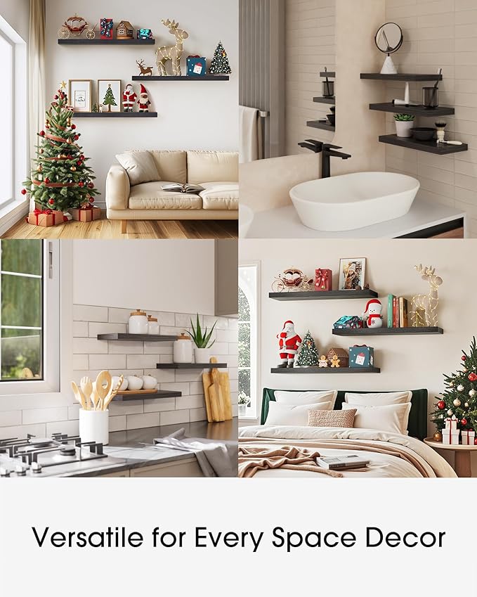 BAYKA Floating Shelves for Wall, 22.5 inches Wall Mounted Rustic Wood Shelves for Bathroom, Bedroom, Living Room, Floating Shelves for Books/Storage/Decor (Black,Set of 3)