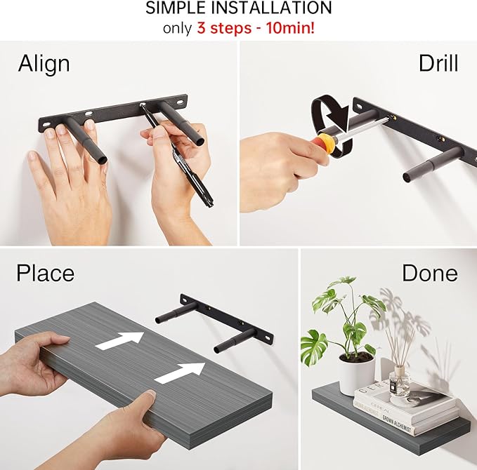 - ๐๐จ๐๐๐ซ๐ง & ๐๐ข๐ง๐ข๐ฆ๐๐ฅ๐ข๐ฌ๐ญ ๐๐ญ๐ฒ๐ฅ๐ โ Featuring clean lines and a rustic finish, these wall-mounted shelves ๐๐๐ ๐ ๐ฆ๐จ๐๐๐ซ๐ง ๐ญ๐จ๐ฎ๐๐ก to any room, from cozy bedrooms to contemporary living spaces
