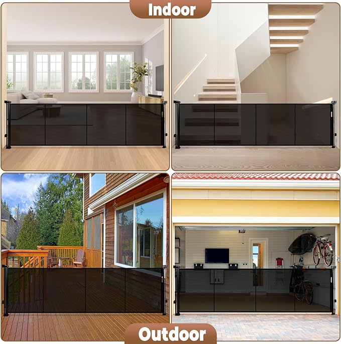 - 【Fiberglass Reinforced Mesh Rods】Upgraded retractable baby gate for stairs have added several additional reinforced rods in the mesh, enhancing its strength to prevent sagging, wrinkling, the bottom is less likely to lift, which prevents children and pets from going under the mesh, unfolds and retracts smoother and doesn't get stuck.