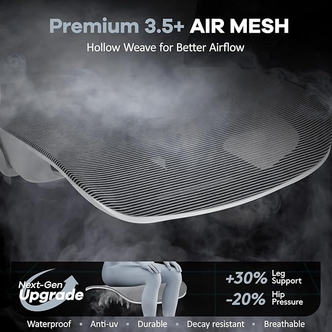 - Breathable Mesh Seat:The high-resilience mesh seat offers superior support and allows maximum airflow,preventing heat buildup and keeping you refreshed and focused.The large 20.8" W x 20.5" D seat cushion accommodates different sitting positions.The breathable mesh fabric enhances air circulation and keeps you cool all day long.