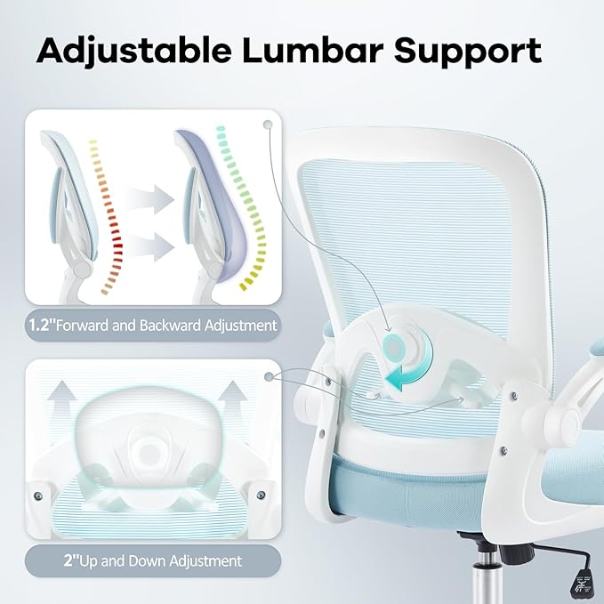 Office Chair,Ergonomic Mesh Desk Chair with Adjustable Lumbar Support,Computer Chair with Flip-up Armrests, Rolling Executive Chairs, Home Office Chair(Blue)