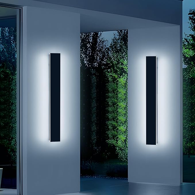 - Energy-Efficient, Long-Lasting Outdoor Wall Lights: Illuminate your spaces with 2400 lumens of high-CRI (≥85) light using a 24W LED strip. Enjoy up to 50,000 hours of service life, reducing electricity bills and frequent replacements. The IP65-rated power supply driver ensures advanced protection against short circuits and overloads, making these modern outside lights a smart, reliable, and eco-friendly choice for any exterior light fixture. Perfect for modern outdoor house lights and garage linear wall lights.
