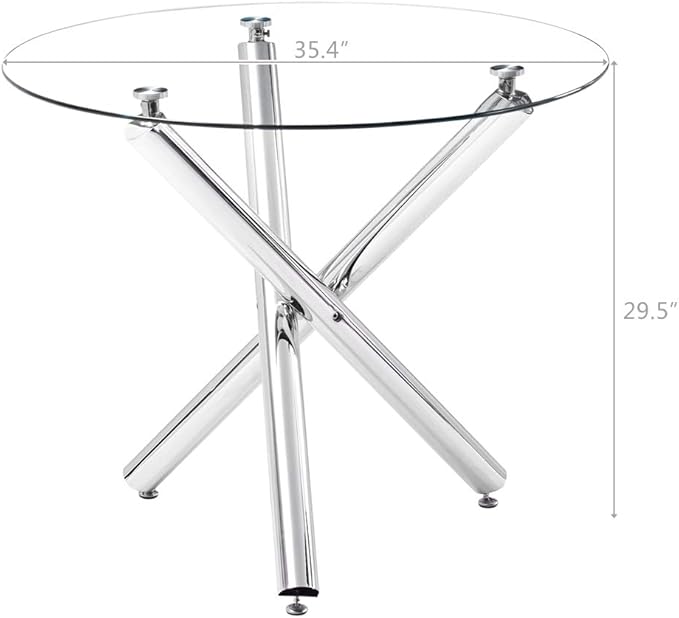 - 【Unique Round Dining Table】: Overall size: 35.43"L x 35.43"W x 30"H. Our glass dining table can comfortably seat 2-4 people. This small dining table, designed with everyday use in mind, defines modern style with its distinctive look that will compliment any decor.