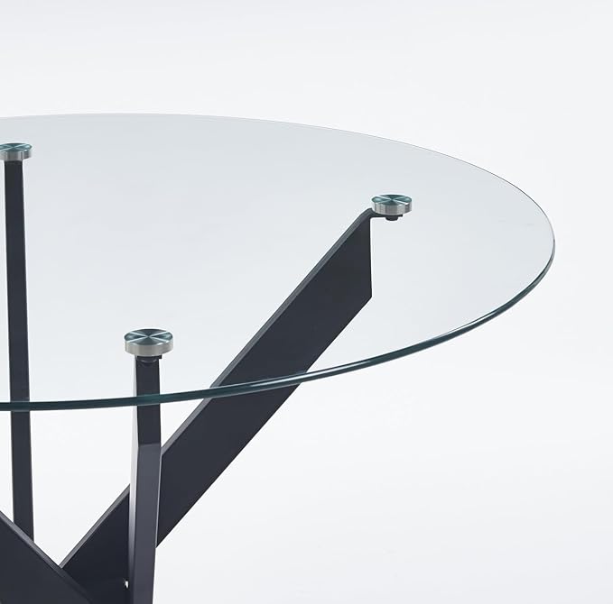- 【Modern Design Dining Table】: Our round glass dining table is a sleek, modern minimalist piece. Its clear tempered glass top and clean lines create a bright, elegant look. It easily adapts to any style, from modern to vintage, becoming the perfect centerpiece for your dining space.