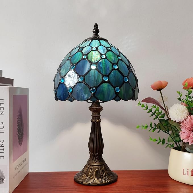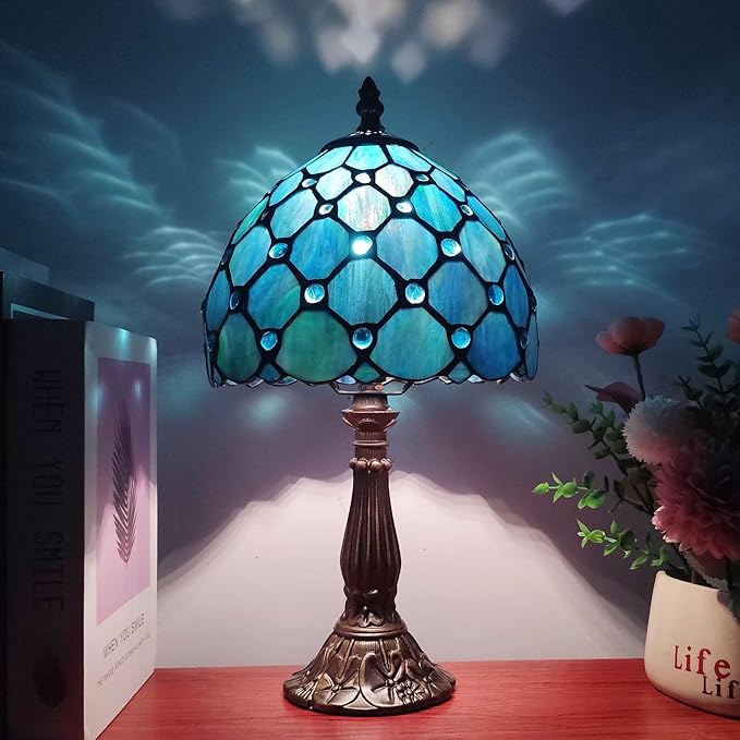 Small Tiffany Table Lamp 8 Inch Blue Pearls Style Tiffany Style Stained Glass Antique Light Bedroom Bedside Lamp Retro Reading Light
