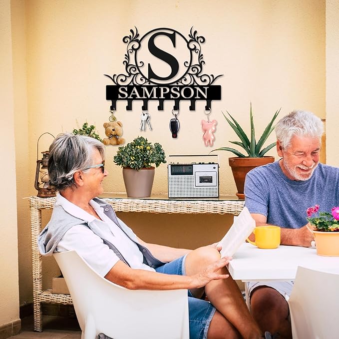 - Personalized Key Holder - Just Click "CUSTOMIZE NOW" and enter the family name last name on this metal key holder for wall, adding a unique touch to your home decor. This key holder wall mount not only adds beauty to any interior space in your home, but it also makes a one-of-a-kind collectible