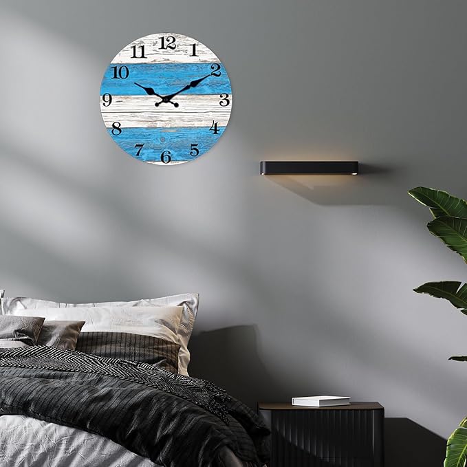 - 5.[Beautiful Decoration] - The blue and white wall clock keeps time accurately and stylishly,the analog clock suitable for kitchen wall decor,classroom decor,bathroom wall decor,home decor wall,office wall decor,decor for bedroom,dining room decor.