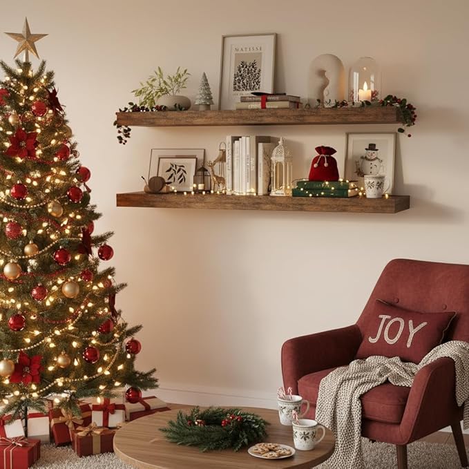 - Sturdy and Easy to install: Includes all necessary hardware to make these floating shelves extremely easy to assemble. We also provide you with detailed install instructions for you to install the shelves in a few minutes.If youโre looking for an easy way to add some functional style to your room, It highly recommend definitely recommend giving these a try!