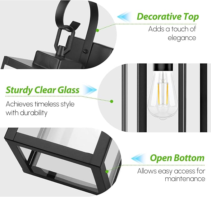 - E26 Base Bulbs Required: This outdoor light for house is compatible with a variety of E26 base bulbs, such as LED, CFL, incandescent, and halogen bulbs, providing flexibility in choosing the right type of lighting for your needs. Please ensure that the wattage of the selected bulb does not exceed 100W