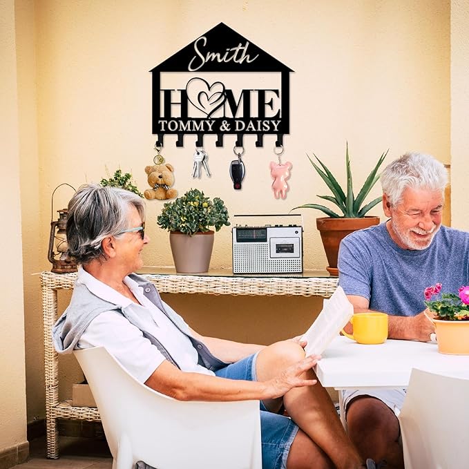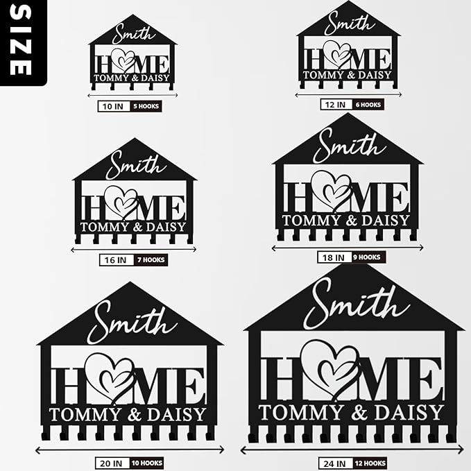 - Personalized Key Holder - Just Click "CUSTOMIZE NOW" and enter the family name last name on this metal key holder for wall, adding a unique touch to your home decor. This key holder wall mount not only adds beauty to any interior space in your home, but it also makes a one-of-a-kind collectible