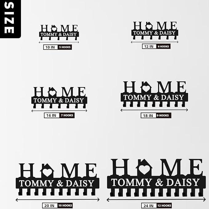 - Various Sizes and Colors - There are 6 sizes and various colors to choose from meet your daily needs. This custom metal key rack not only stores your keys, but also holds your wallet, jacket, towel, scarf and more. Ideal storage solution for living room, pantry, bedroom, kitchen, bathroom, closet and more!