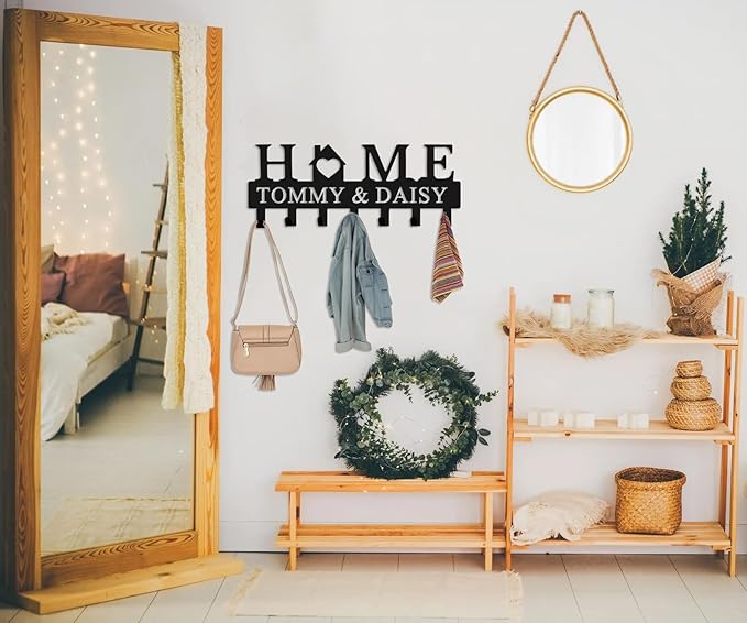 - Personalized Key Holder - Just Click "CUSTOMIZE NOW" and enter the family name last name on this metal key holder for wall, adding a unique touch to your home decor. This key holder wall mount not only adds beauty to any interior space in your home, but it also makes a one-of-a-kind collectible