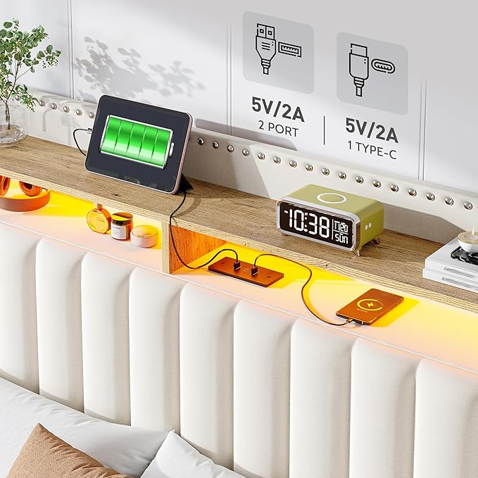 - Charging at Any Time: Say goodbye to low battery anxiety! This queen bed frame with headboard built-in charging station, which can totally charge your electronic devices at the same time. Save time, and make life more comfortable, solving the problem that the socket is too far.