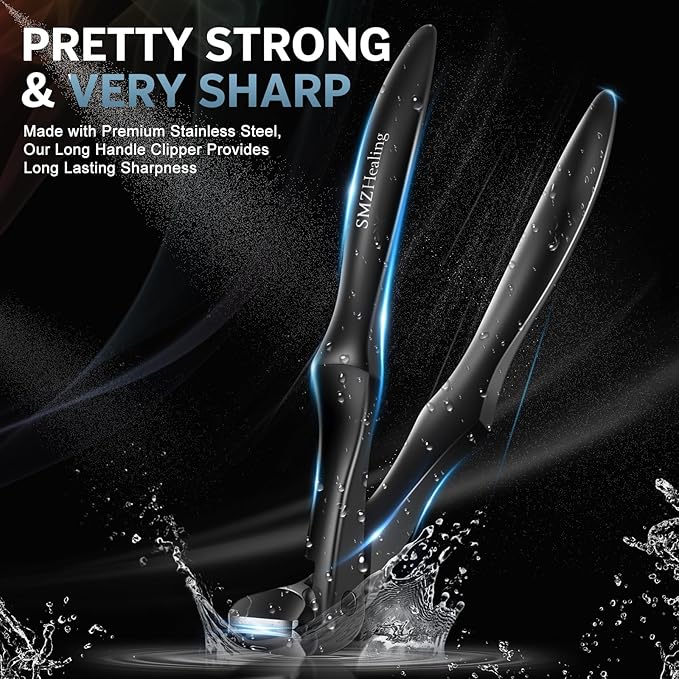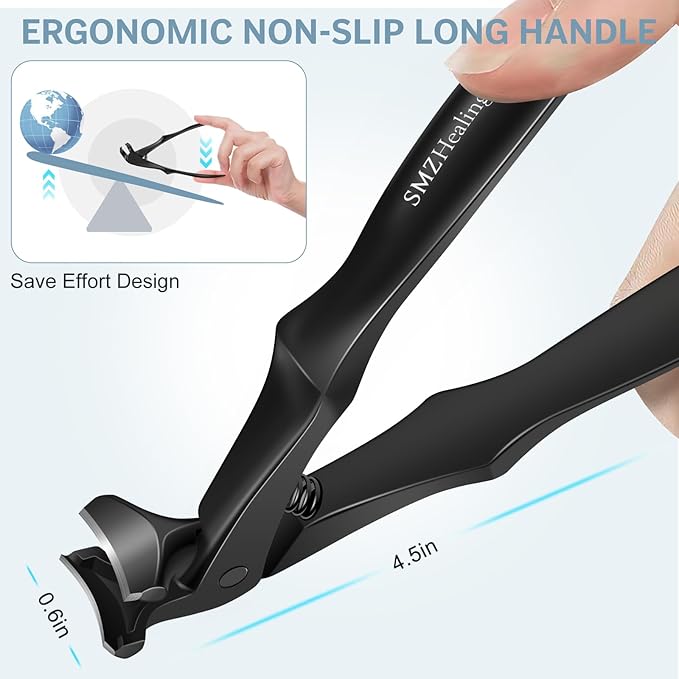 - Ergonomic Long Handle Saves Effort - The heavy duty nail clippers for thick nails, specially designed for the elderly, feature an ergonomic long handle that offers a comfortable grip and easy control. The 4.65-inch long handled toenail clippers for seniors, with an anti-slip design, combine comfort and control. The professional nail clippers are labor-saving for adults, reduce hand fatigue, enhance safety, and make foot care a breeze