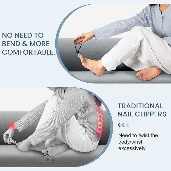 - Innovative Angled Head Design - Experience easier trimming with the angled-head toenail clippers for thick toenails that are suitable for the elderly. The innovative curved-head design reduces the need for bending when trimming thick toenails, thus providing a clear view of the area being trimmed. This feature not only reduces strain but also ensures precision, making it easy for the seniors and those with limited mobility to take care of their toenails