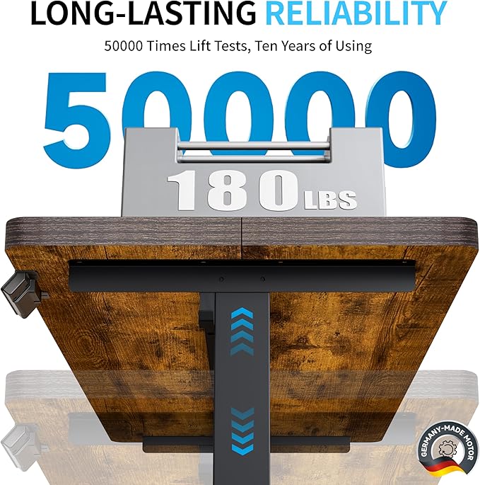 - Stable & Sturdy Design: This electric standing desk boasts a powerful motor that lifts at 0.8" per second and has been rigorously tested 20,000 times. This office desk cold-rolled steel frame supports up to 132 lbs, with a recommended daily use capacity of 180 lbs