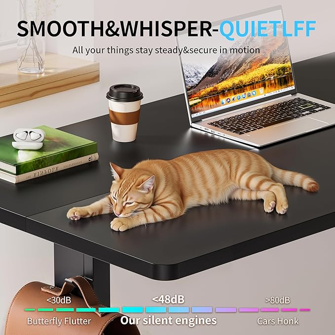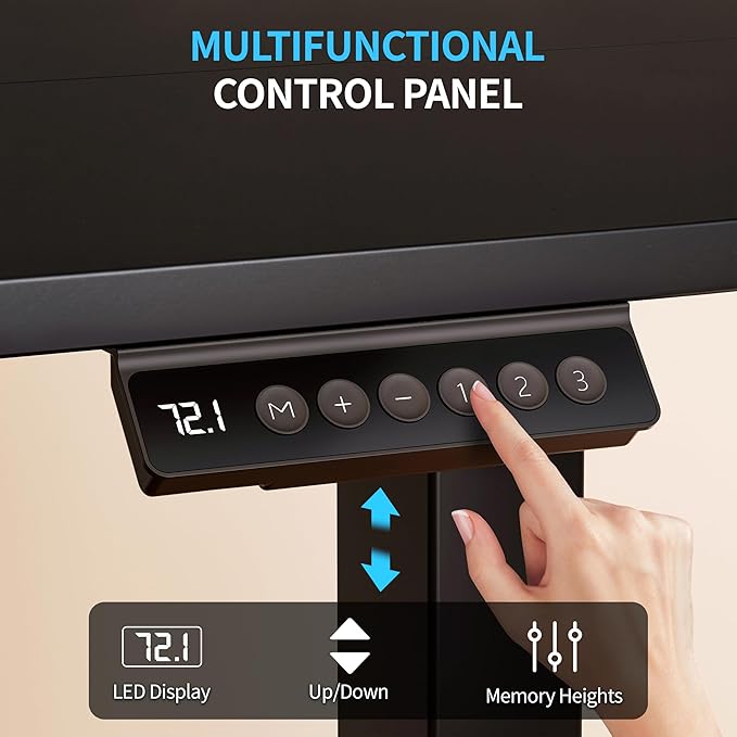 - Height Adjust Smoothly: This adjustable standing desk with 3 memory presets, you can easily save and recall 3 customizable heights for sitting and standing with a single button press. The escritorio adjusts smoothly from 27.5" to 45.7" with low noise <48 dB. So that won't influence families and pet rest