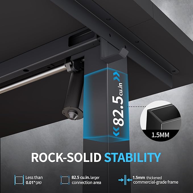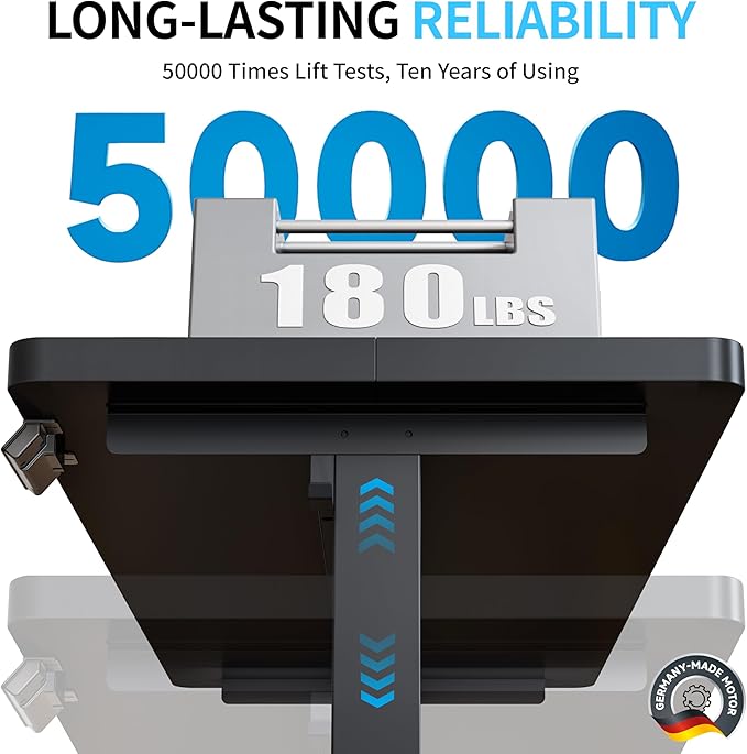 - Stable & Sturdy Design: This electric standing desk boasts a powerful motor that lifts at 0.8" per second and has been rigorously tested 20,000 times. This office desk cold-rolled steel frame supports up to 132 lbs, with a recommended daily use capacity of 180 lbs